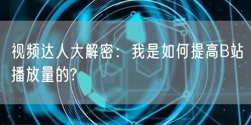 视频达人大解密:我是如何提高B站播放量的?