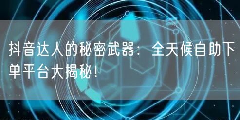 抖音达人的秘密武器:全天候自助下单平台大揭秘!