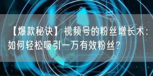【爆款秘诀】视频号的粉丝增长术:如何轻松吸引一万有效粉丝?