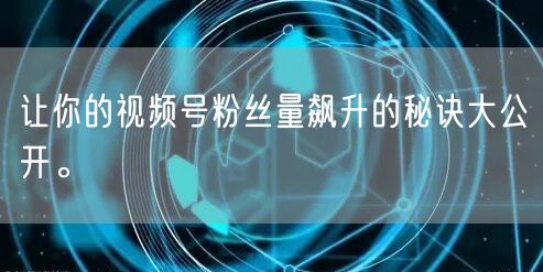 让你的视频号粉丝量飙升的秘诀大公开。