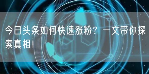 今日头条如何快速涨粉?一文带你探索真相!